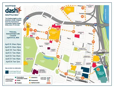 Explore downtown on the Hartford dash – a free shuttle service that takes you to a variety of hotels, restaurants, historic buildings, and many other points of interest. The Hartford dash departs from the Connecticut Convention Center’s lower lobby every 15 minutes.