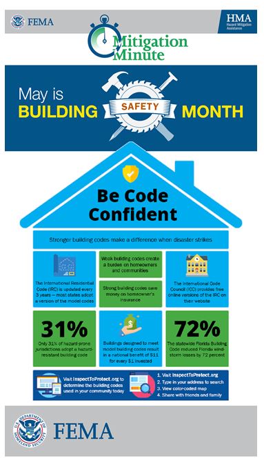 - FEMA Participating in Building Safety Month with International Code Council and Federal Alliance for Safe Homes