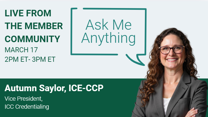 Autumn Saylor, ICE-CCP, Vice President of ICC Credentialing, joined us on our “Ask Me Anything” series on the International Code Council’s online member community to answer member-submitted questions.