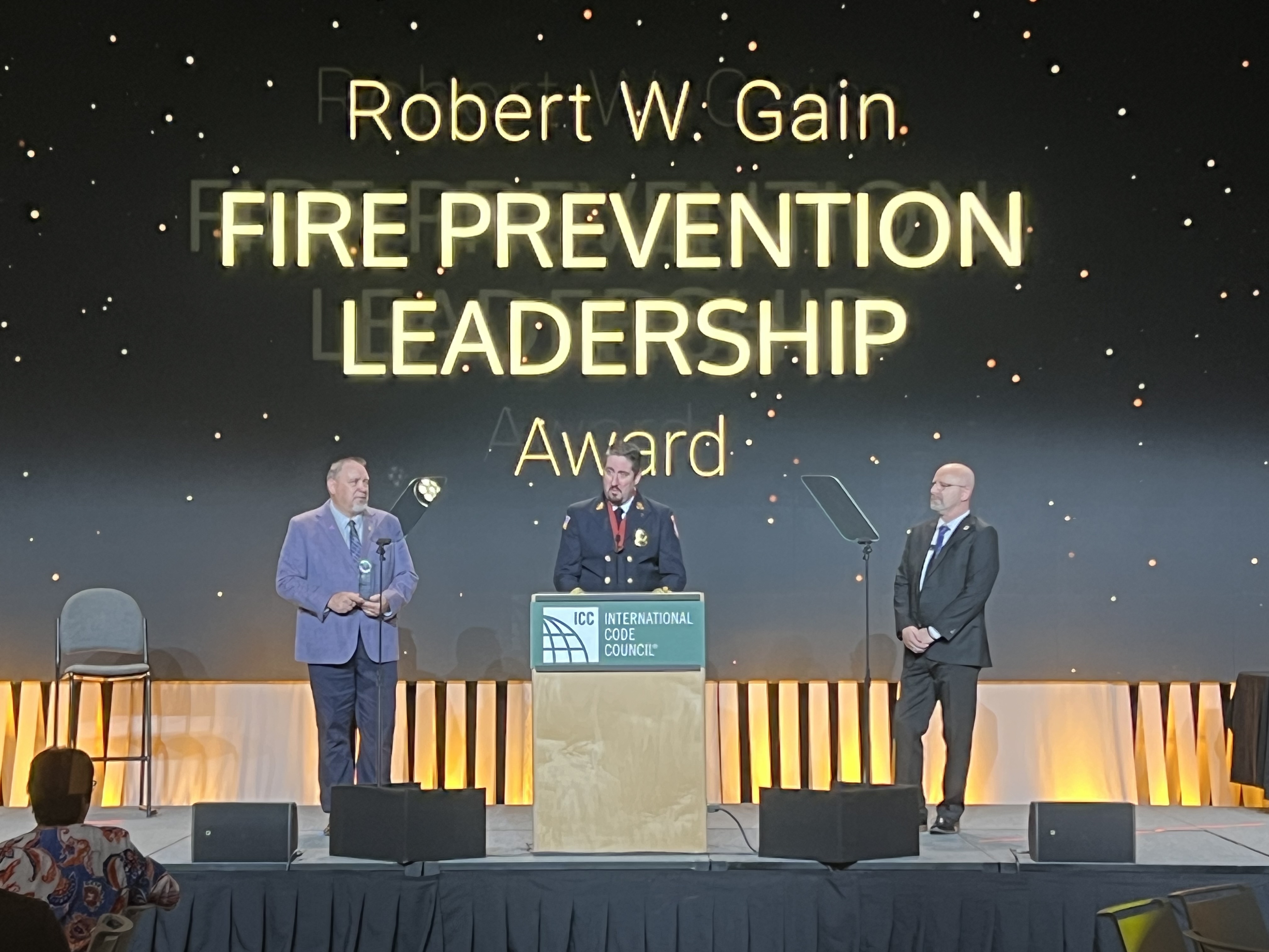 Timothy Diehl, Chair of the ICC Fire Service Membership Council, acknowledged that while professionals in fire and building safety often shy away from accolades, he was happy to see someone as dedicated as Brunette being recognized.