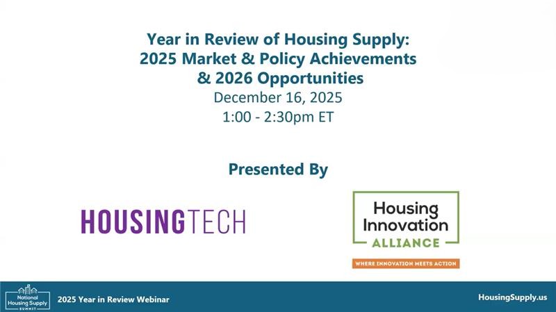 On Dec. 16, 2025, HousingTech and the Housing Innovation Alliance hosted a national public webinar examining progress made in expanding U.S. housing supply in 2025 and researching opportunities for 2026.