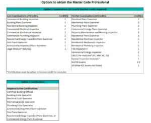 Commercial Building Inspector (3 core credits) + Residential Building Inspector (2 core credits) - Electrical Inspector = 3 credits –