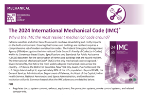 The IMC is a vital part of a complete building safety system, providing an integral component necessary to stay current with the latest building technologies while providing an acceptable level of safety to protect life and property from the potential dangers associated with the installation and operation of mechanical systems.