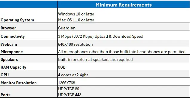 When testing through the ProctorU Platform, you will need a computer that fulfills the following system requirements: